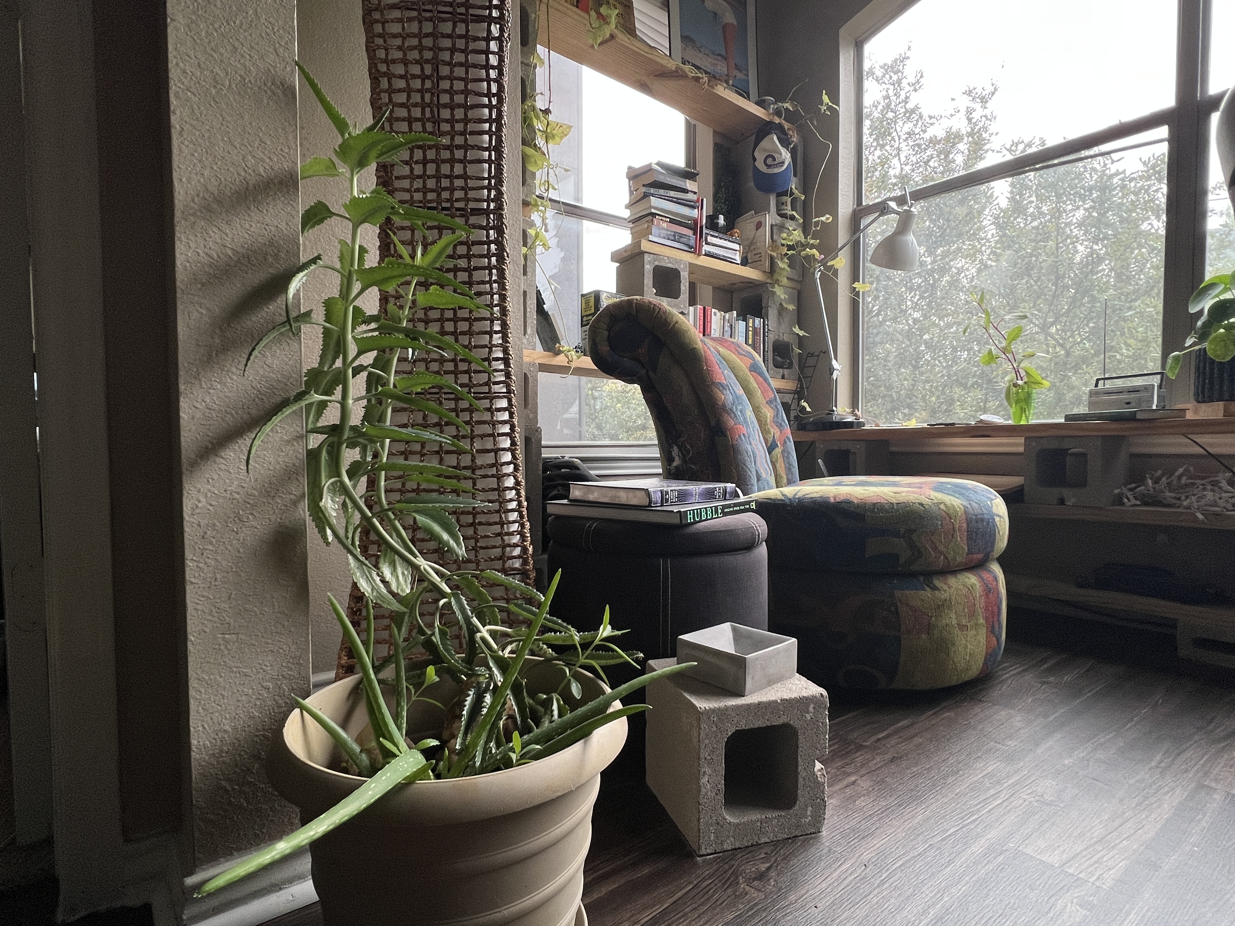 The money plant is the coolest, smartest plant, always keeping to itself and maintaining composure. It never makes a mess or begs for water (as the spinach does with its intolerable infantile wilt (i might be spoiled by the hardiness of succulents)). It displays a unique leaf shape and measures its phototropism to ensure balance isn't lost. To be fair, many of the same things could be said about the aloe vera but its shape is unfortunately not very interesting. both make for hardy companions.